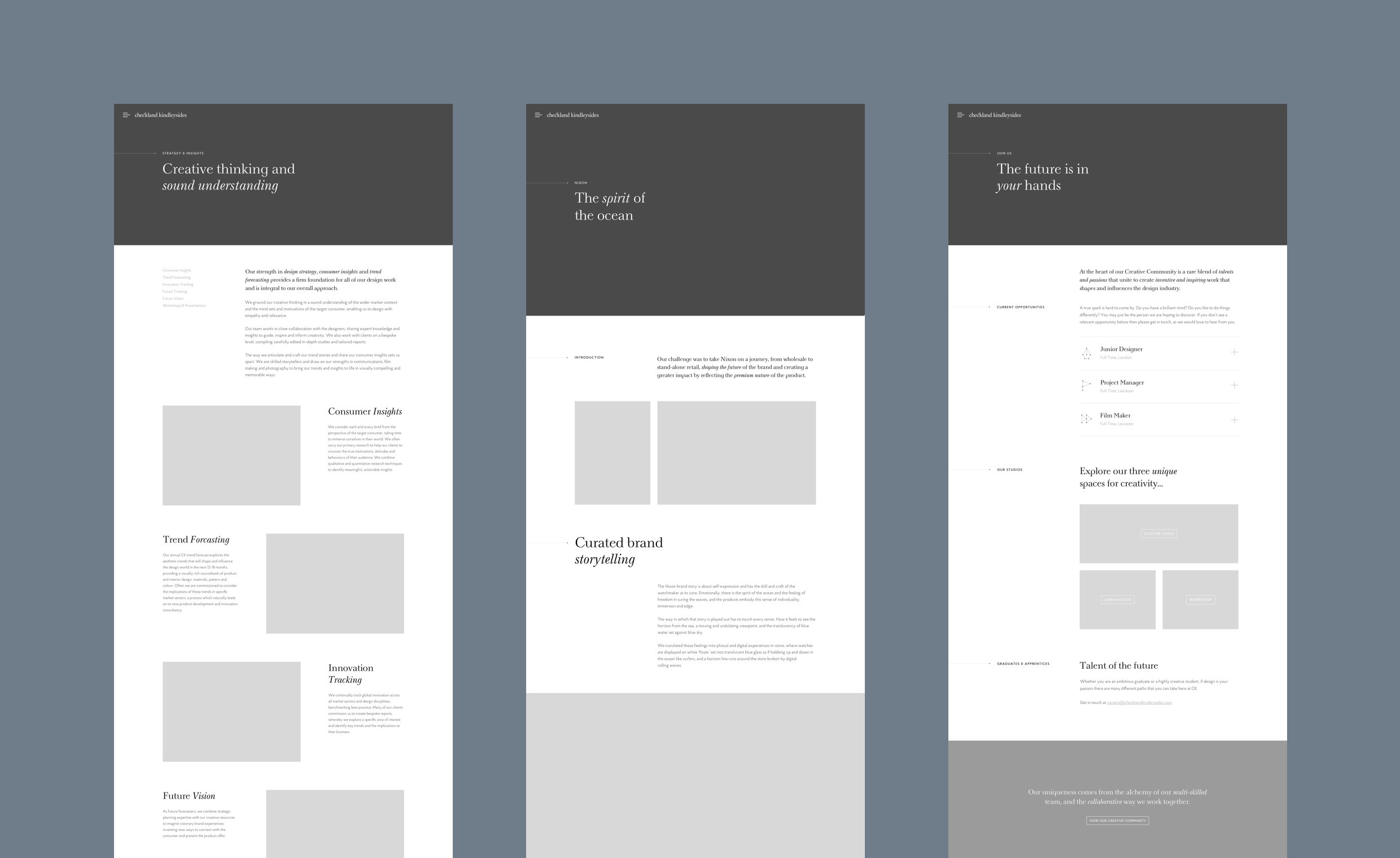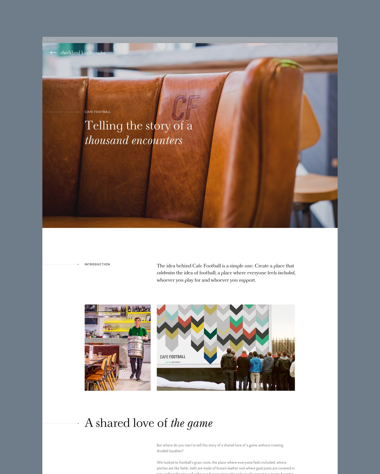 The brief was to create a new online showcase for Checkland Kindleysides, a global design agency I specialise in the art of brand storytelling. The site needed to hero their extensive and diverse range of well-crafted case studies, as well as provide a space for their latest news, creative community posts, a jobs board and a clear list of all the services they provide.