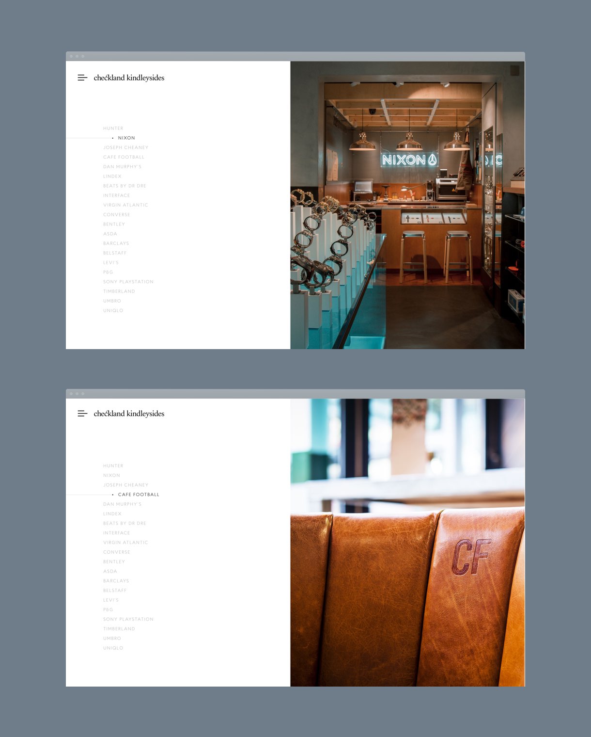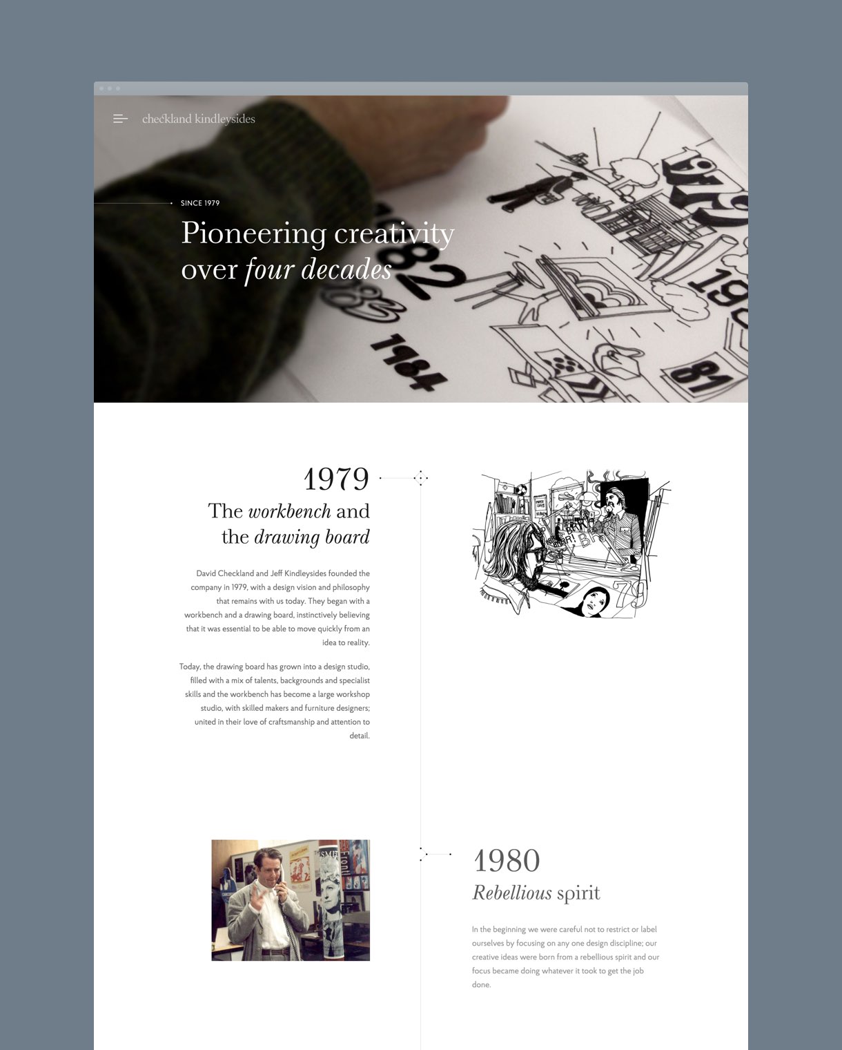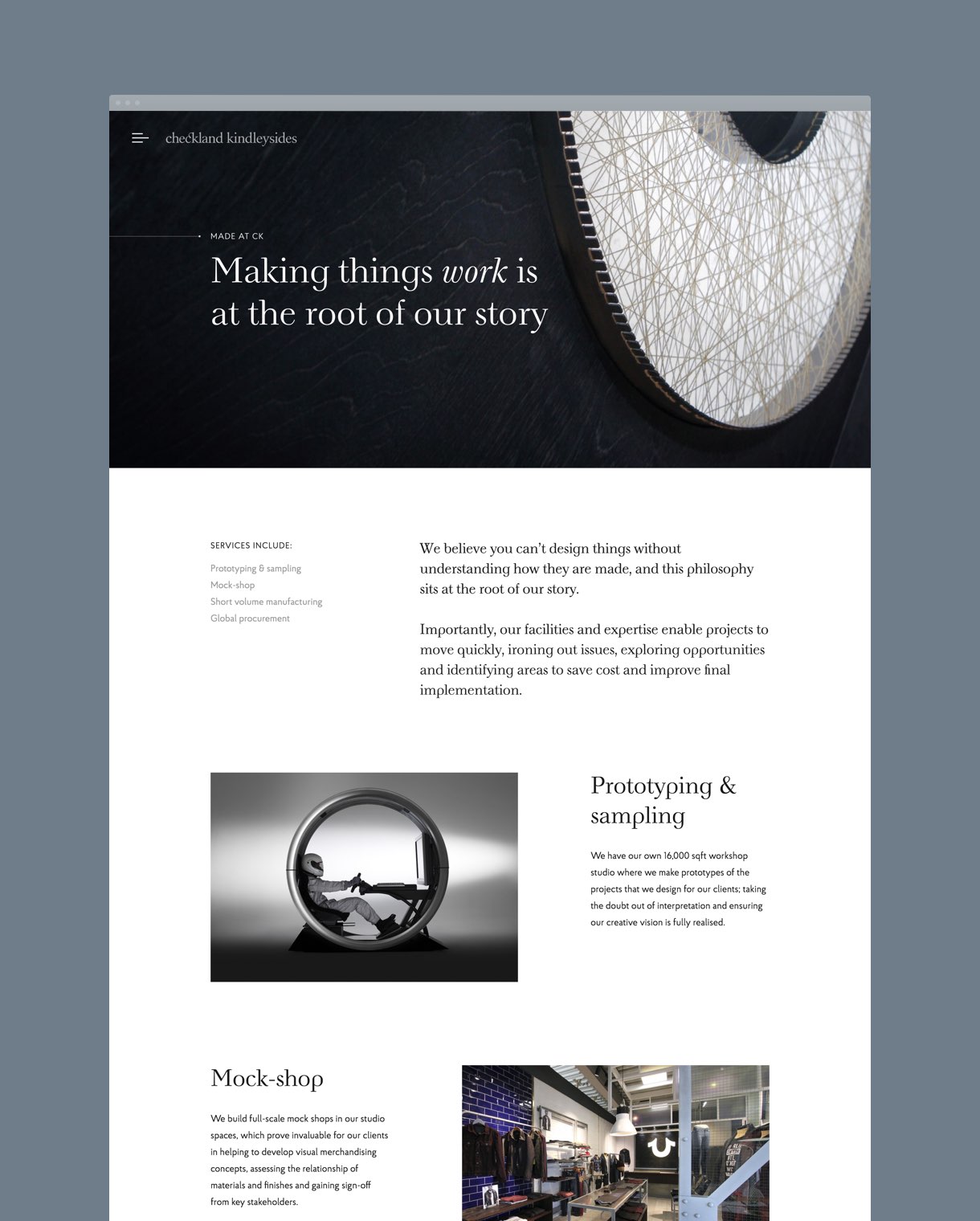 Collaborating within a small team at Sennep, we developed a look-and-feel that reflected craft and precision present in their work, using a pin-point graphical element with delicate hairlines and classic, refined typography. The colour palette was stripped back to black, grey and whites to create maximum focus on the full-width imagery. We developed an interesting grid system that was flexible enough to give interesting and varied layouts for each case study.