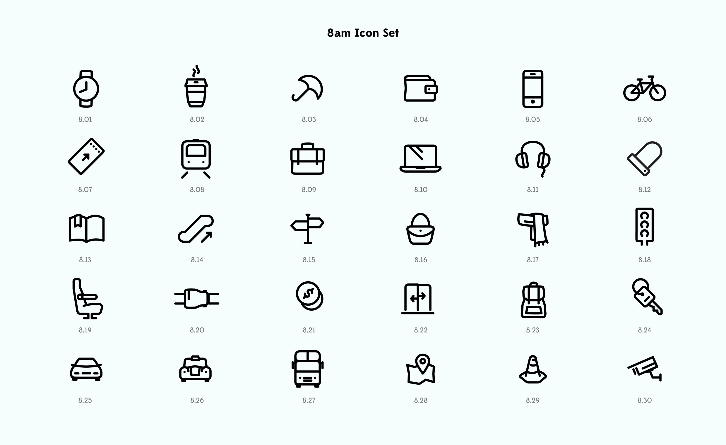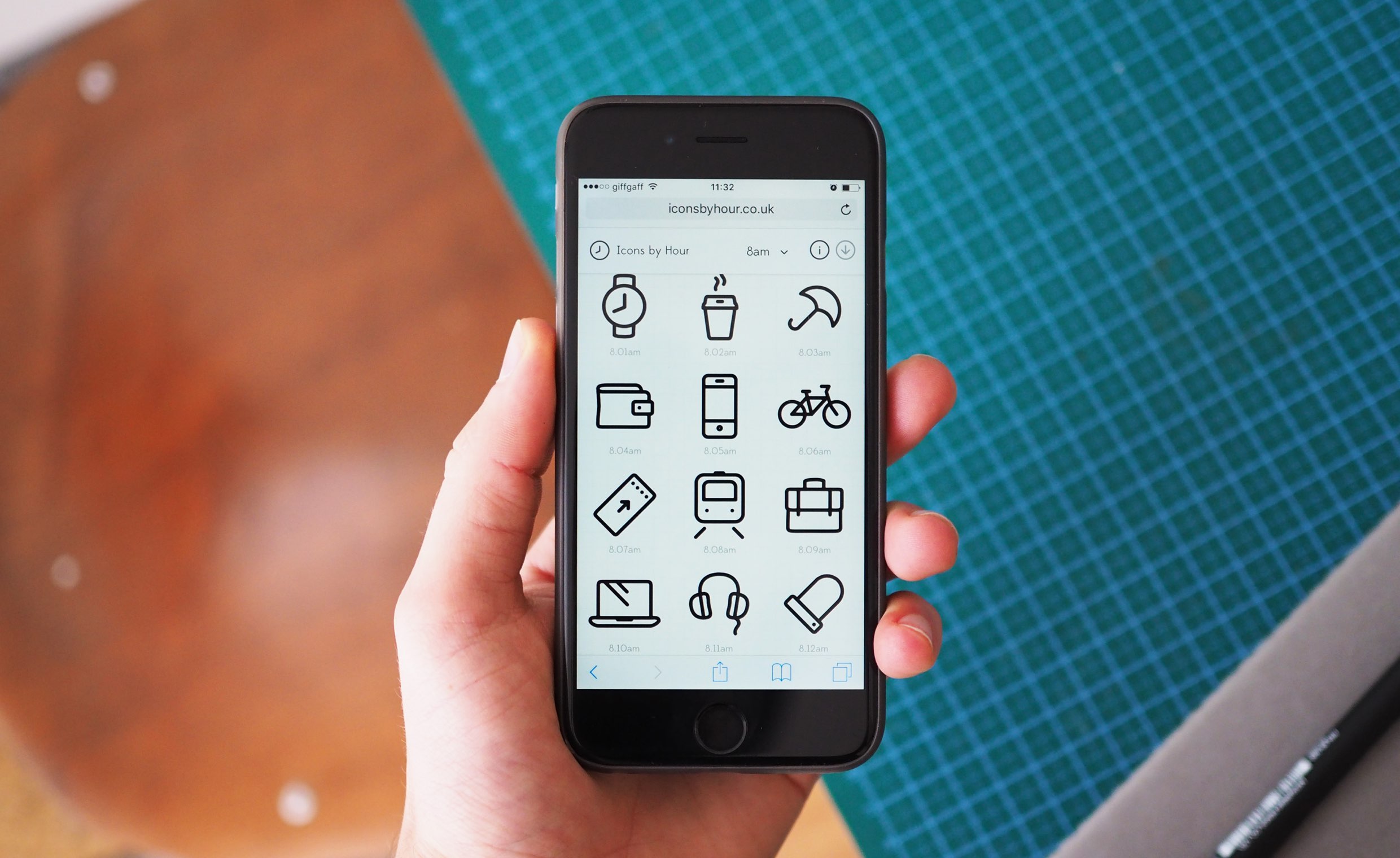 To showcase the Icons by Hour collection and give myself a future-proof framework for new icons, I created a small responsive website purely from svg files. The icons were also featured on the The Noun Project, receiving thousands of monthly downloads, and a selection of icons were used in an article for The Atlantic Magazine.