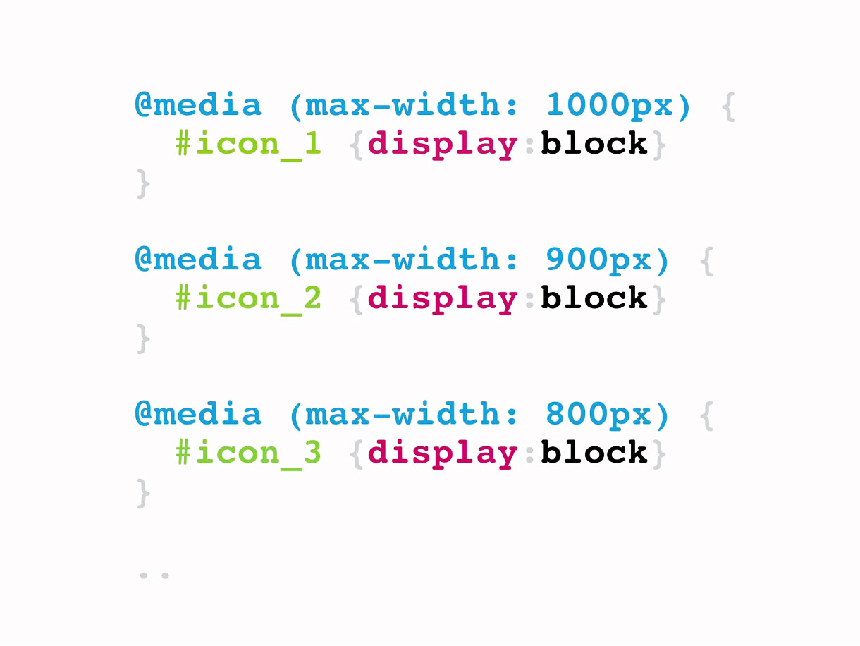 Responsive Icons is a project that explores scalable iconography. The concept interrogates the varying complexity of symbols used on devices, and aims to find the perfect balance of simplicity in relation to screen size. By creating a simple prototype to showcase the idea, it has become a platform for new thinking in responsive design. Visit the link below and scale your browser window to see the concept in action.
