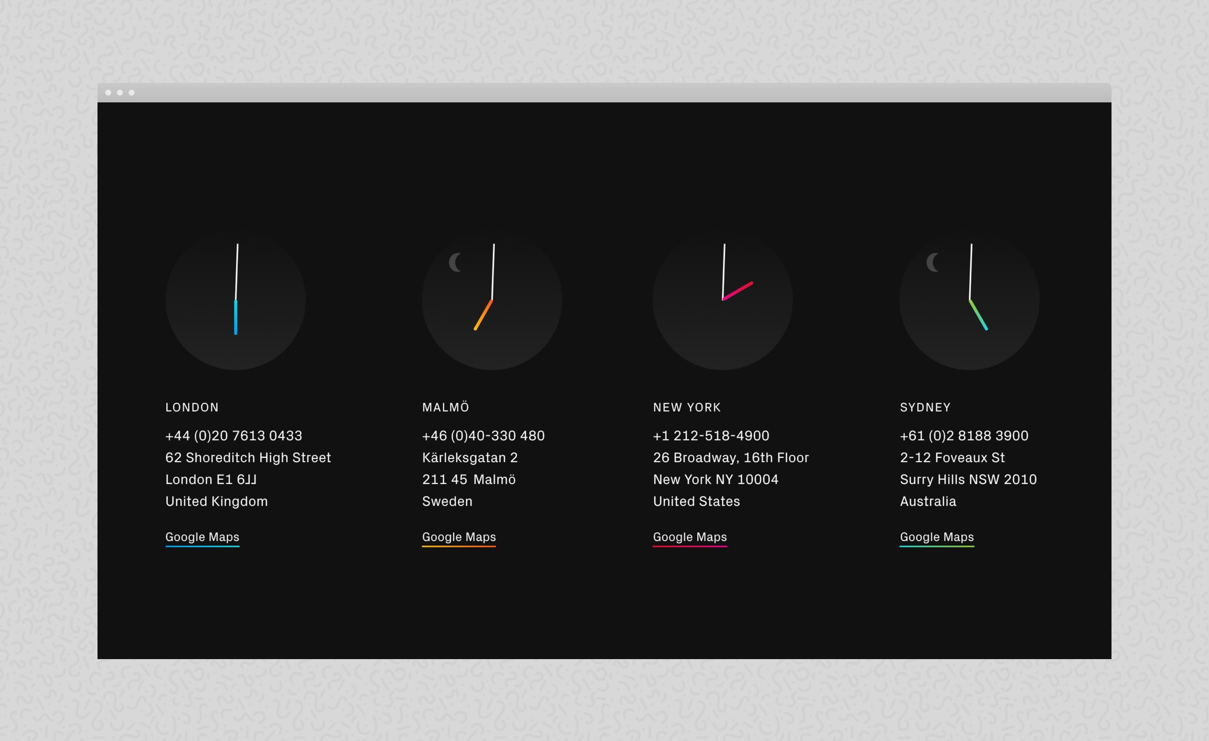 The result was a simple, clean and scalable design that utilised bold typography, vibrant colour and playful details to encapsulate the personality and quality of ustwo in an online space. It was featured on design showcases such as site inspire, and is continuing to evolve and develop with new sections and features due to the simple, modular design framework that the team set.